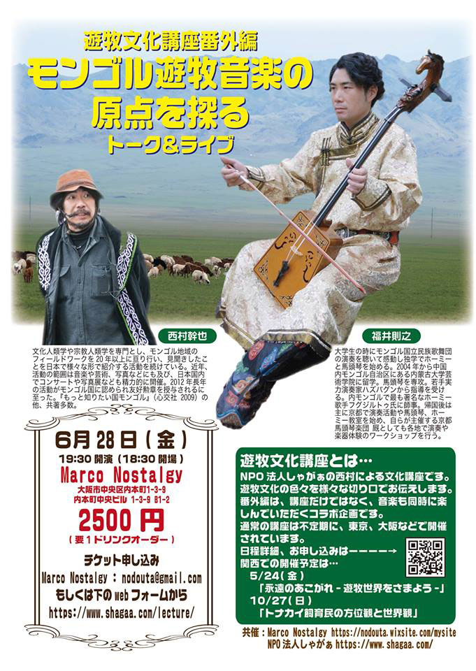 遊牧文化講座番外編「モンゴル遊牧音楽の原点を探る トーク&ライブ」-