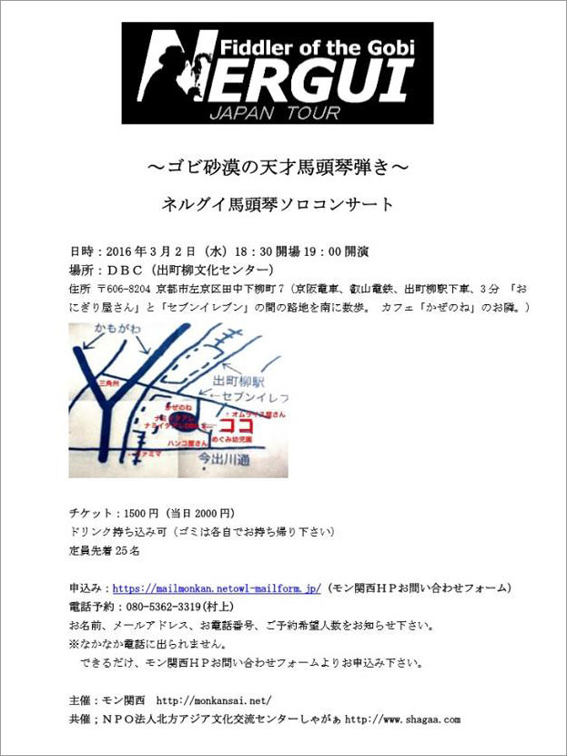 6年振りとなるネルグイさんの来日。急遽、京都でのソロコンサートが可能となりました!