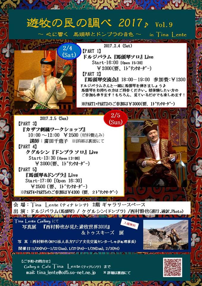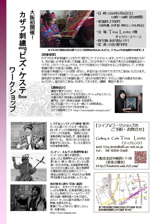 ※2月6日・7日の「遊牧の民の調べ」ライブを同時お申込みいただくと、ワークショップの参加費が2,500円に♪