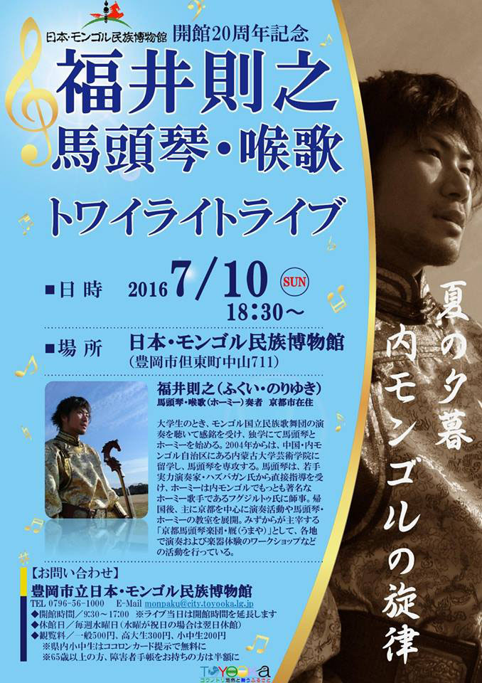 【場所】日本・モンゴル民族博物館内(兵庫県豊岡市但東町中山711)http://www3.city.toyooka.lg.jp/monpaku/