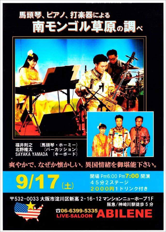 電話:06-6359-2448『馬頭琴&ドンブラ』コンサートライブ