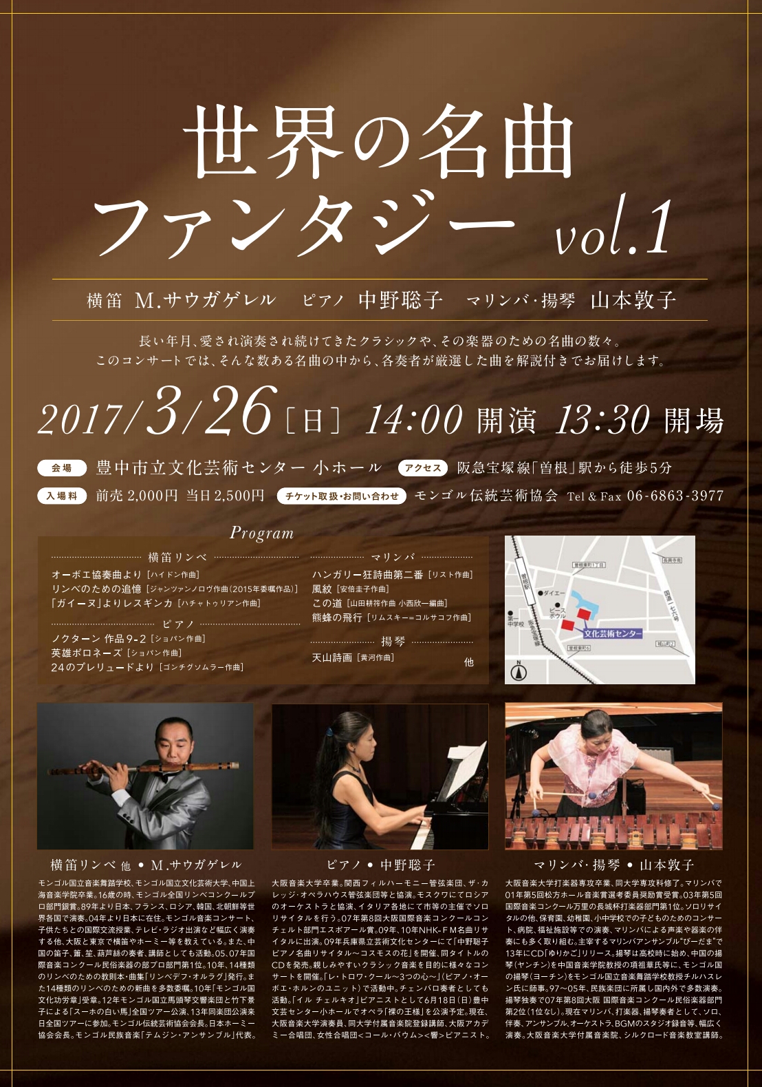 横笛リンベ M.サウガゲレル、ピアノ 中野聡子、マリンバ・揚琴 山本敦子-