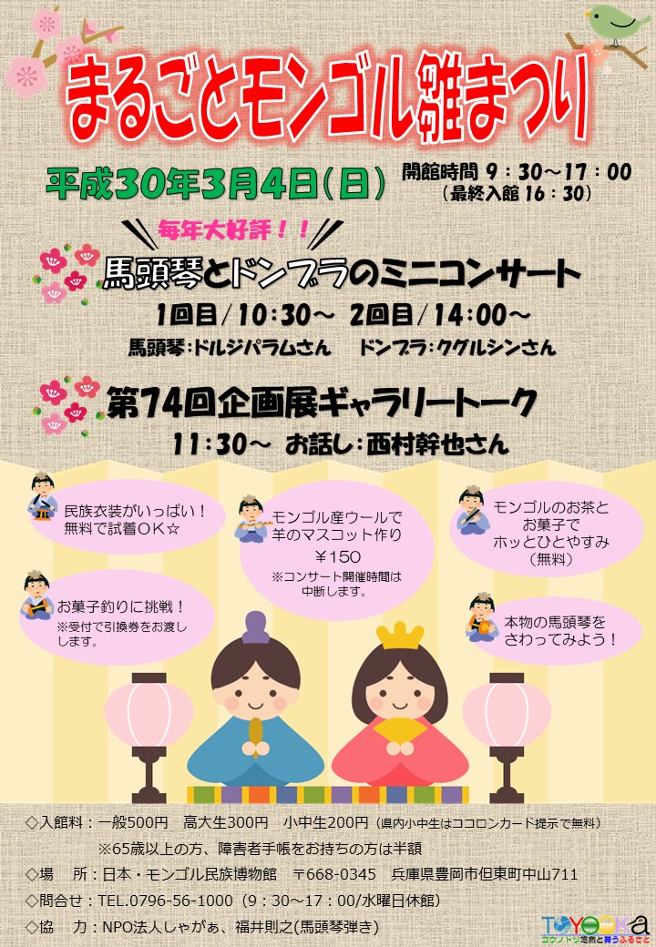 <日本・モンゴル民族博物館会場>【日時】3月1日(日) 10:00~/14:00~