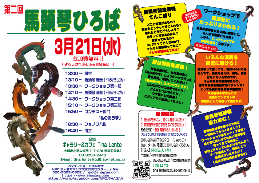 NPO法人北方アジア文化交流センターしゃがぁ 馬頭琴ひろば参加申込フォーム【プログラム】